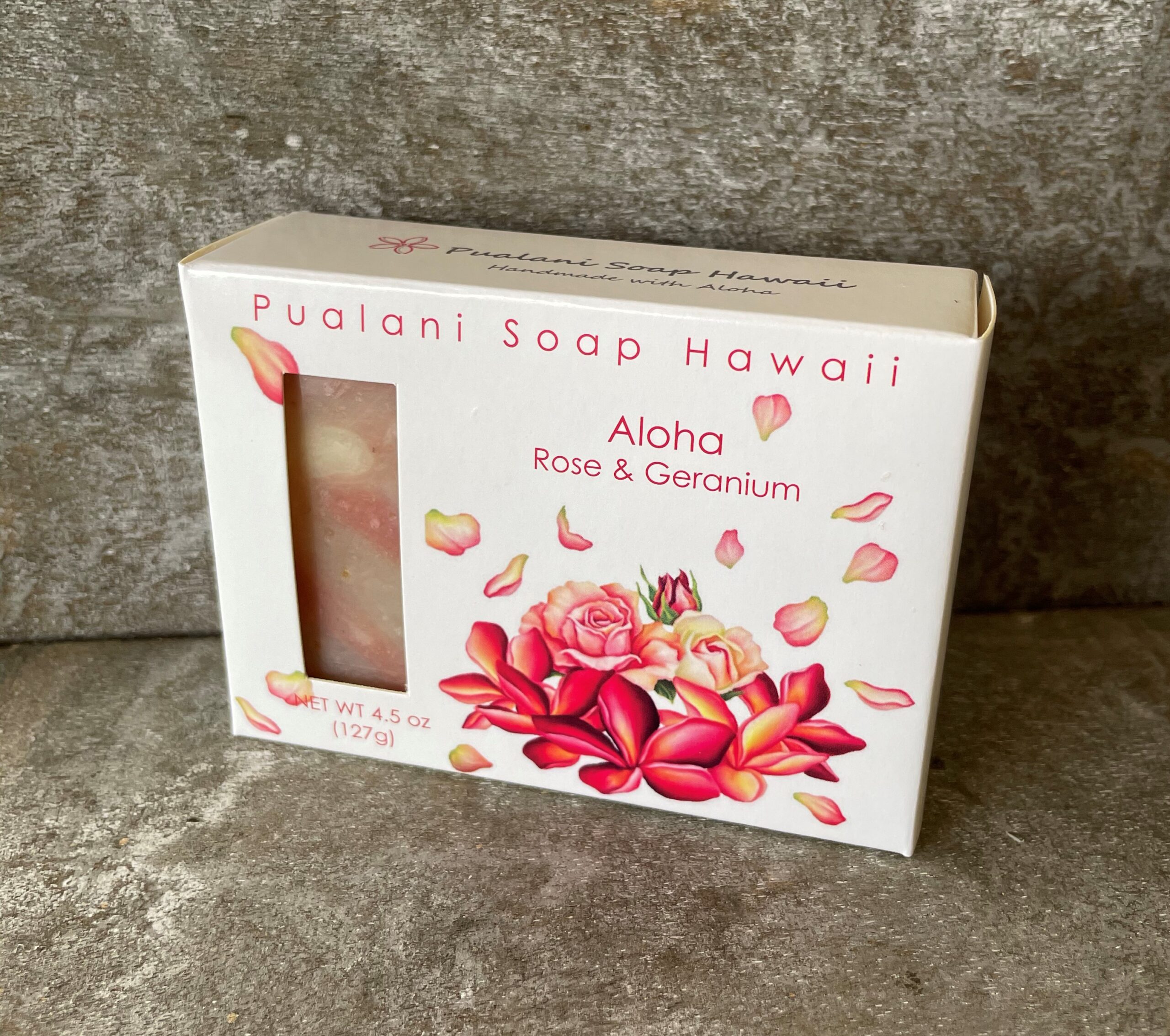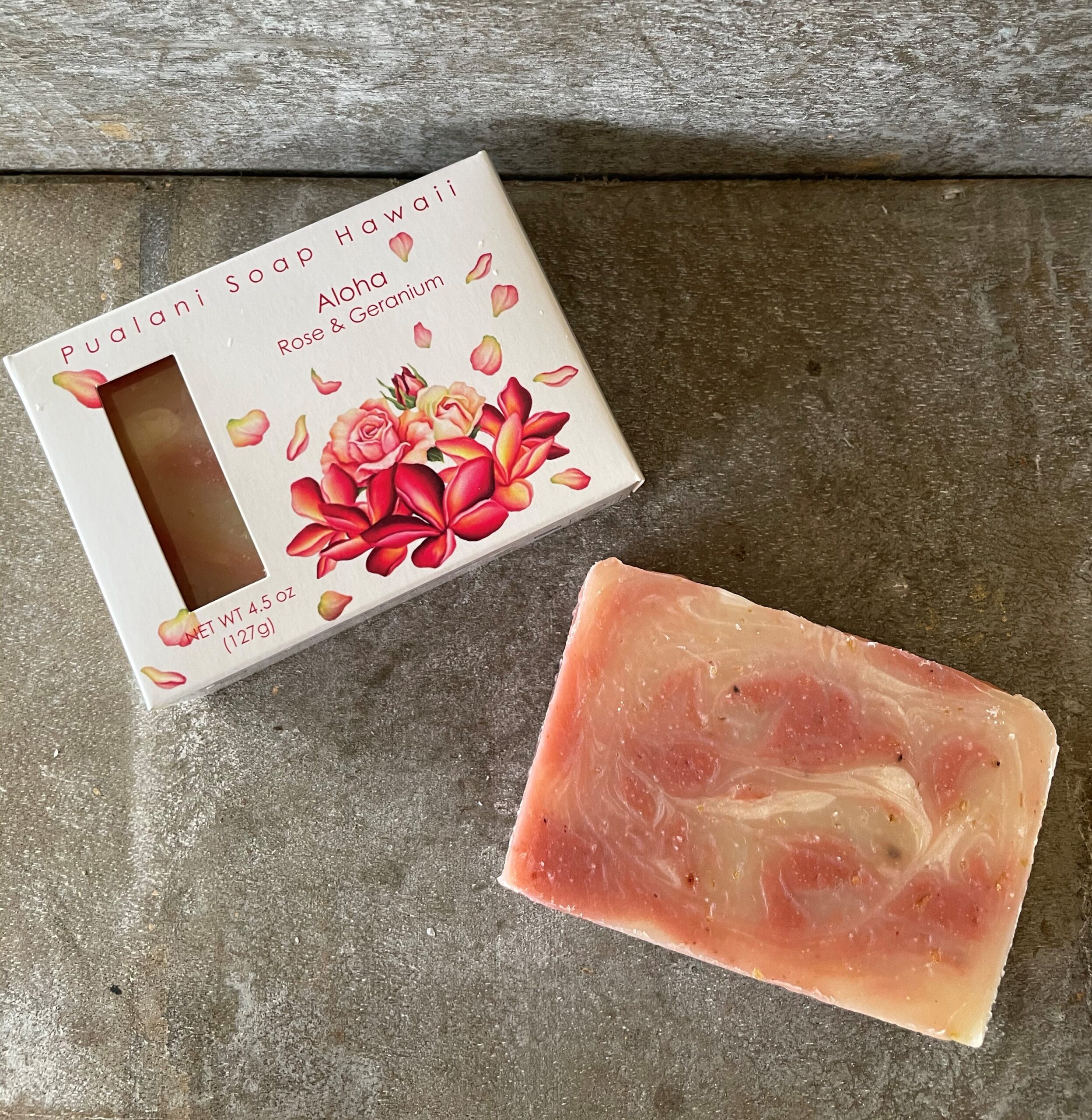 Aloha means love in Hawaiian. Scented with precious Rose Otto and Geranium pure essential oils. This soap is great for face and body, and very mild and conditioning from added ground oatmeal. Gentle cleansing from rose clay, ground oatmeal and rosehip. It is nourishing to your soul mind & whole body. My favorite facial soap.