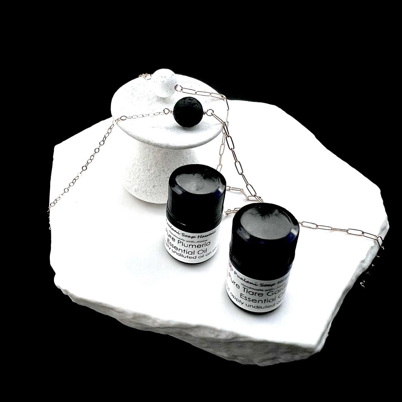 My friend Ebb & Flow makes Handmade jewelry from Hawaii. She makes the minimalist lava stone bracelets. The lava stones remind of the moon in the night sky which orchestrates the ebb and low of our ocean tides. The bracelets are made with 14k gold-filled, so you can sear them in the water. These lava stones can be used as a wearable natural essential oil diffuser. Pualani soap Hawaii offers 100% pure essential oils of fragrant Hawaiian flowers, Plumeria and Tiare Gardenia (Tahitian Gardenia). As you wear the bracelet with a drop of the pure essential oil, the scent of the flowers surrounds you and make you feel relaxed, help releasing anxiety and uplifting your spirit.