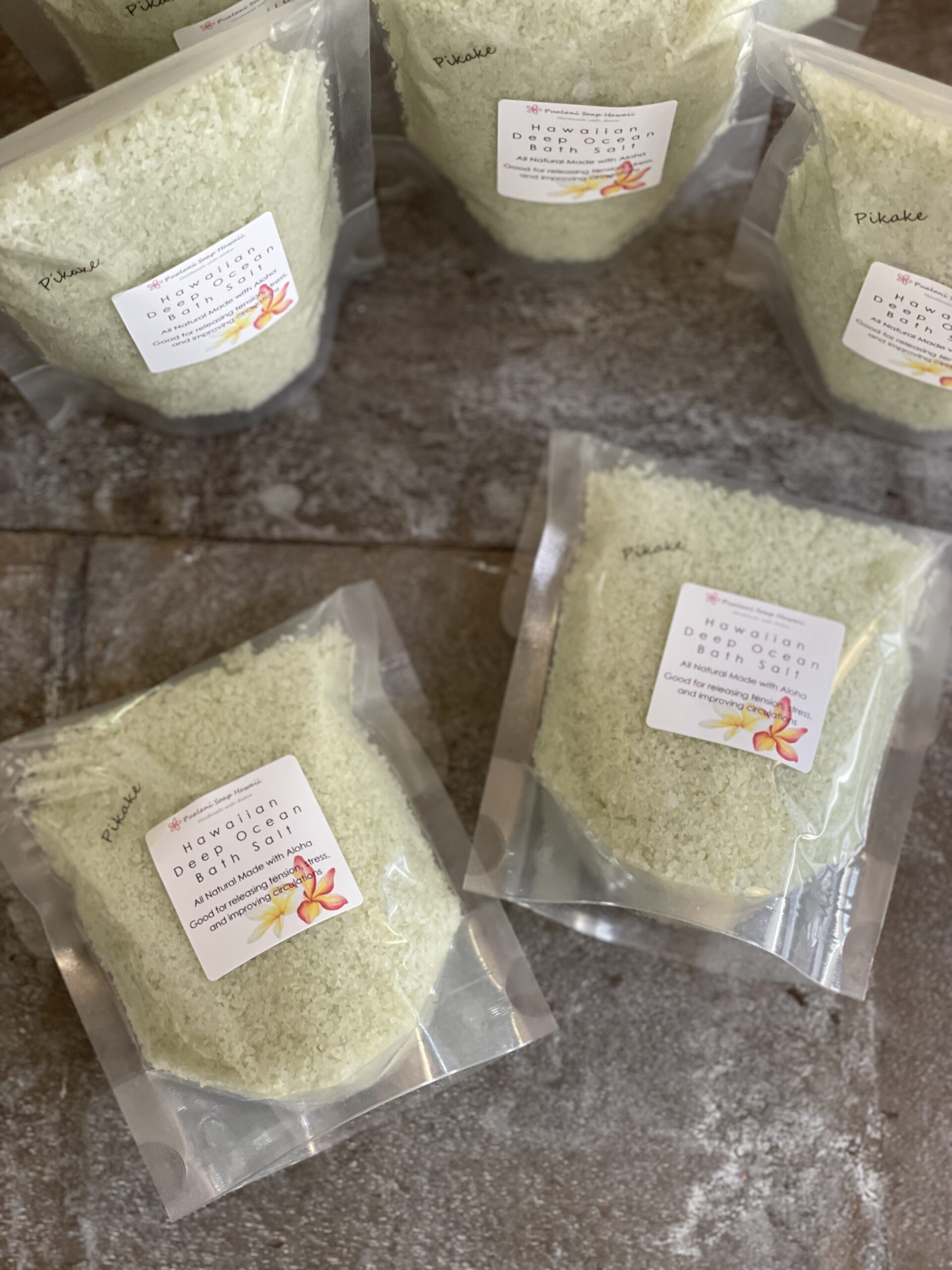 ハワイ島コナ沖の深海水からとれた純度の高い塩を使用。ハワイ産ククイナッツ油、ホホバ油はお肌を乾燥したお肌をやさしく包んでくれます。香りは純正アロマオイルでやさしくつけてあります。