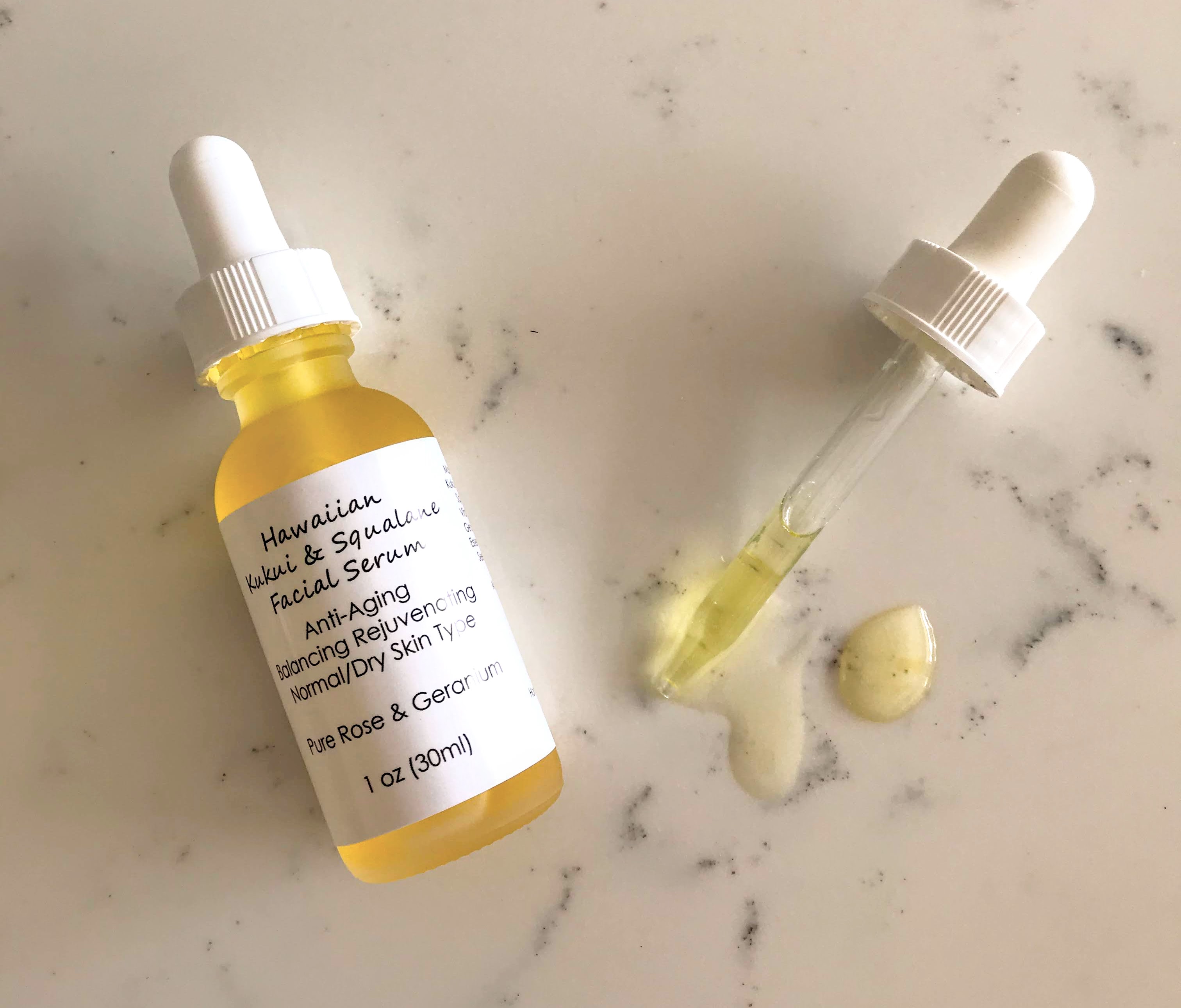 Hawaiian Kukui & Squalane Facial Serum Anti-Aging Normal Dry Skin Pure Rose & Geranium 1oz