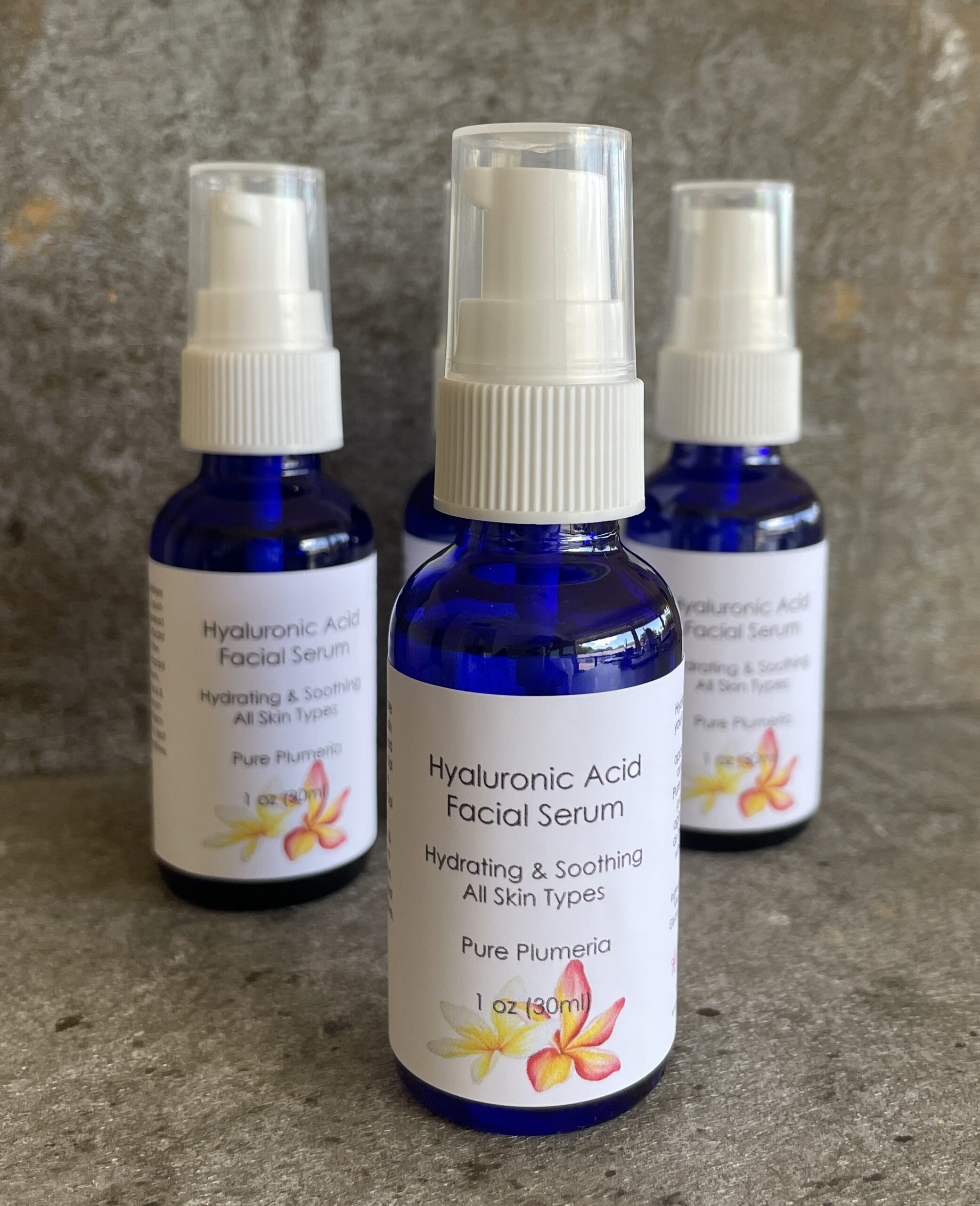 Hyaluronic Acid Facial Serum 1oz Pure Plumeria Hydrating & Soothing for All Skin Types