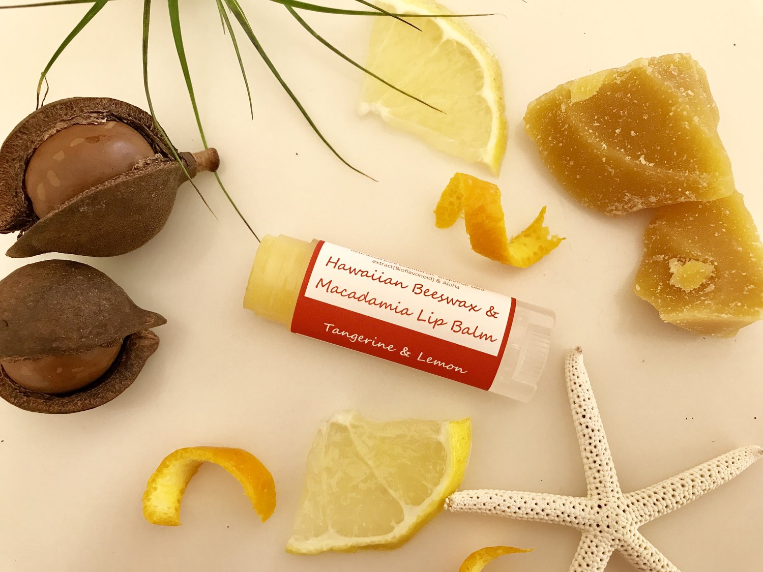 Ingredient List: Hawaiian Beeswax, Macadamia nut, Castor, Jojoba, Coconut oils, Cocoa butter, Aloe, Vitamin E, Tangerine and Lemon pure essential oils, Grapefruit Seed Extract, and Aloha
